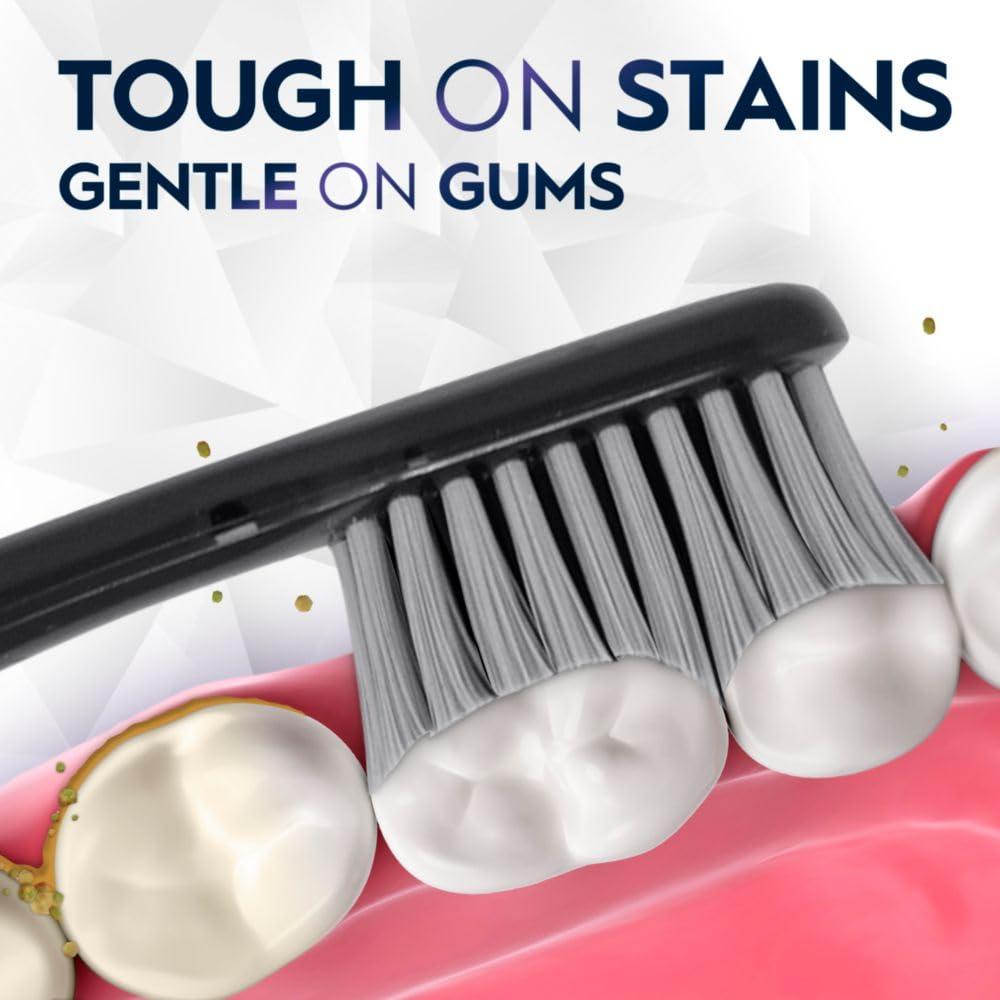 The Oral-B Pro Whitening Brilliance toothbrush is tough on stains and gentle on your gums. This extra soft toothbrush features ultra dense bristles to ensure a soft, gentle clean, while using X-shaped bristles to help polish away surface stains. With a beautifully designed handle for a style grip, you can always find the right posititon and grip for your hand on the toothbrush. The Oral-B Pro Whitening Brilliance toothbrush whitens teeth by removing surface stains. . For the best results, change your toothbrush regularly. A new toothbrush cleans 95% better in hard-to-reach areas*. This pack of Oral-B toothbrushes include different colors of toothbrushes for households with multiple people or stocking up. Oral-B is the #1 Toothbrush Brand Used by Dentists Worldwide. *vs. one 3 months old; research with a flat trim toothbrush