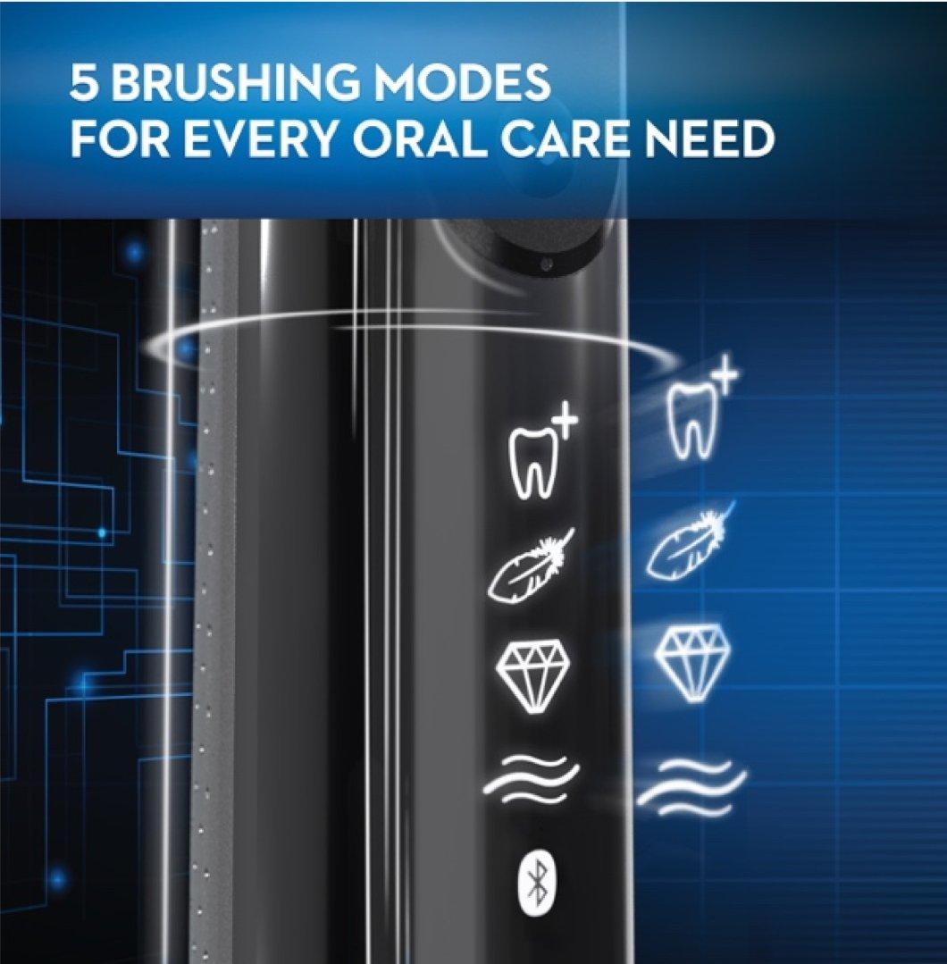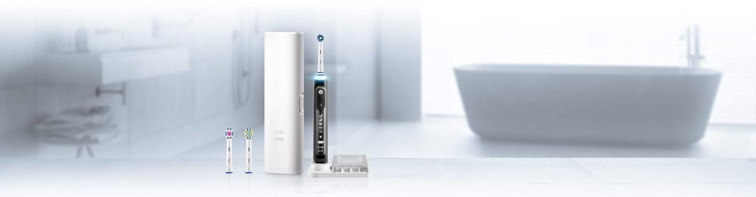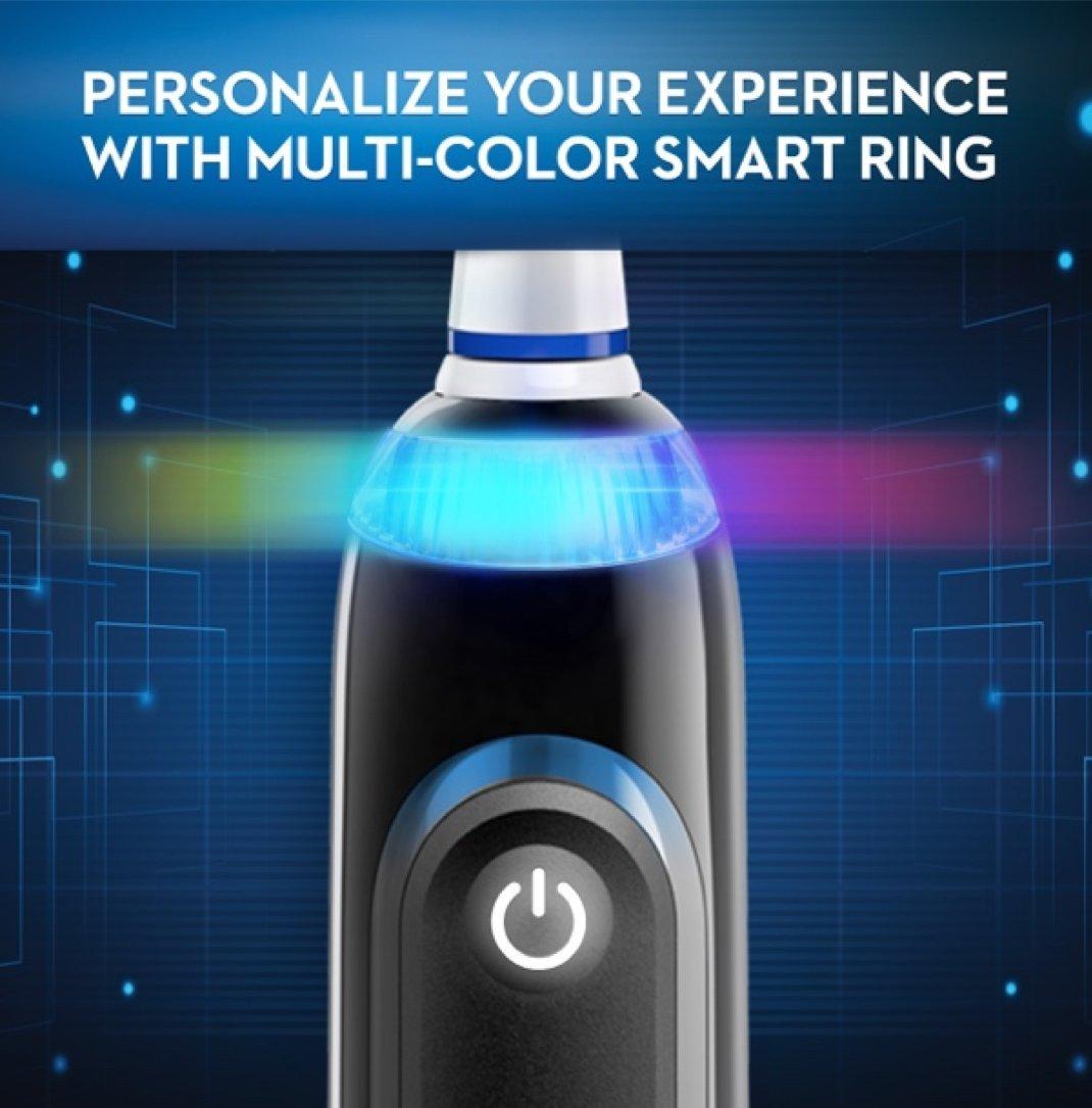 The Oral-B SmartSeries 7500 Power Rechargeable Electric toothbrush with Bluetooth connectivity gives you healthier gums, stronger teeth for life. Bluetooth communication allows the brush to connect with your smartphone to give you real-time feedback on your brushing habits. With 5 unique modes and a customizable SmartRing pressure sensor that lights up when you brush too hard, the Oral-B Pro 7500 will transform the way you brush. You can even customize the pressure sensor's color. Best of all it's brought to you by Oral-B – the No. 1 brand used by dentists worldwide. use as directed with a fluoride toothpaste.