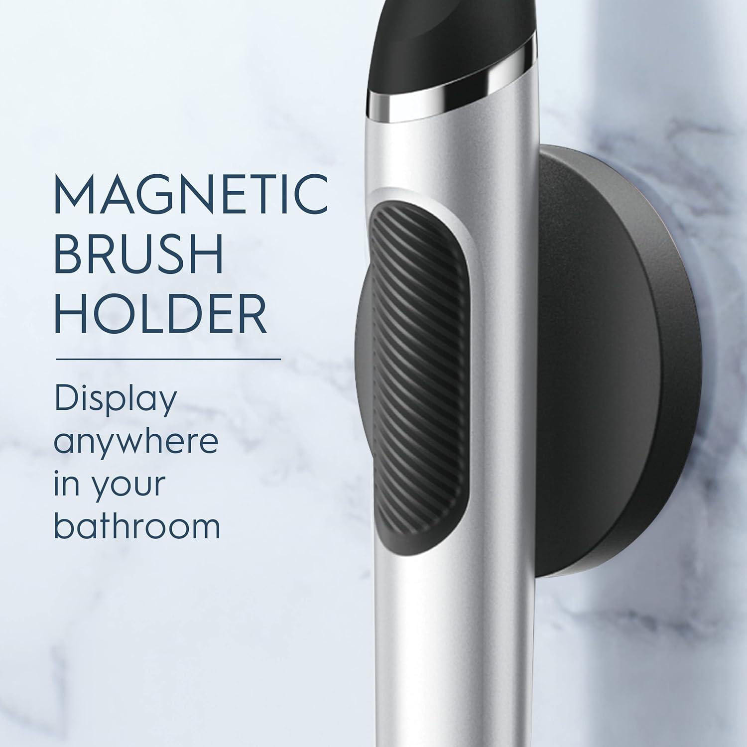 The sleek magnetic holder is perfectly designed for your bathroom wall for hygienic storage of your brush.