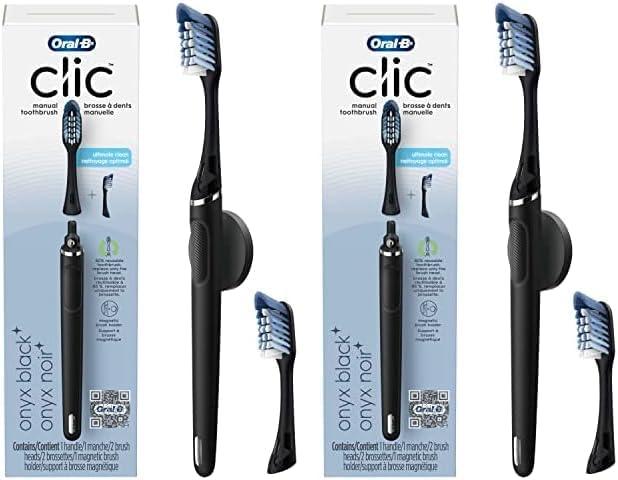 Oral-B Clic Toothbrush, Chrome White, with 1 Bonus Replacement Brush Head and Magnetic Toothbrush Holder(Matte Black)
