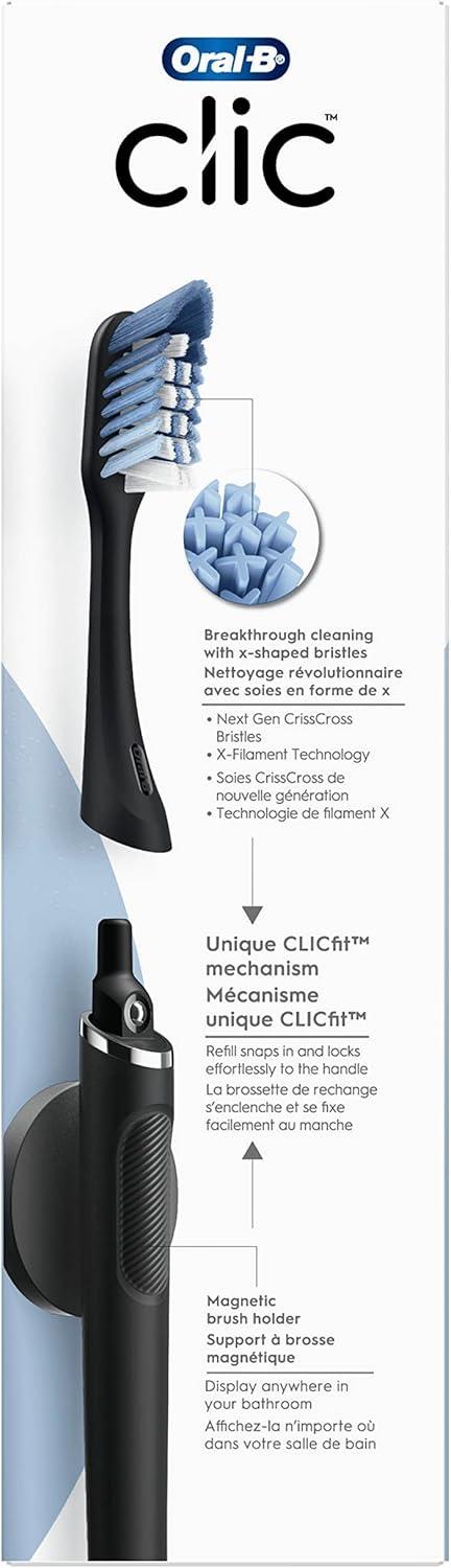 imageOralB Clic Toothbrush Chrome White with 1 Bonus Replacement Brush Head and Magnetic Toothbrush HolderMatte Black