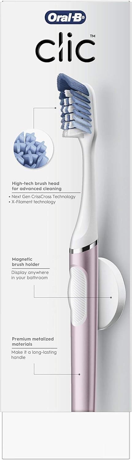 imageOralB Clic Toothbrush Chrome White with 1 Bonus Replacement Brush Head and Magnetic Toothbrush HolderMetallic Rose
