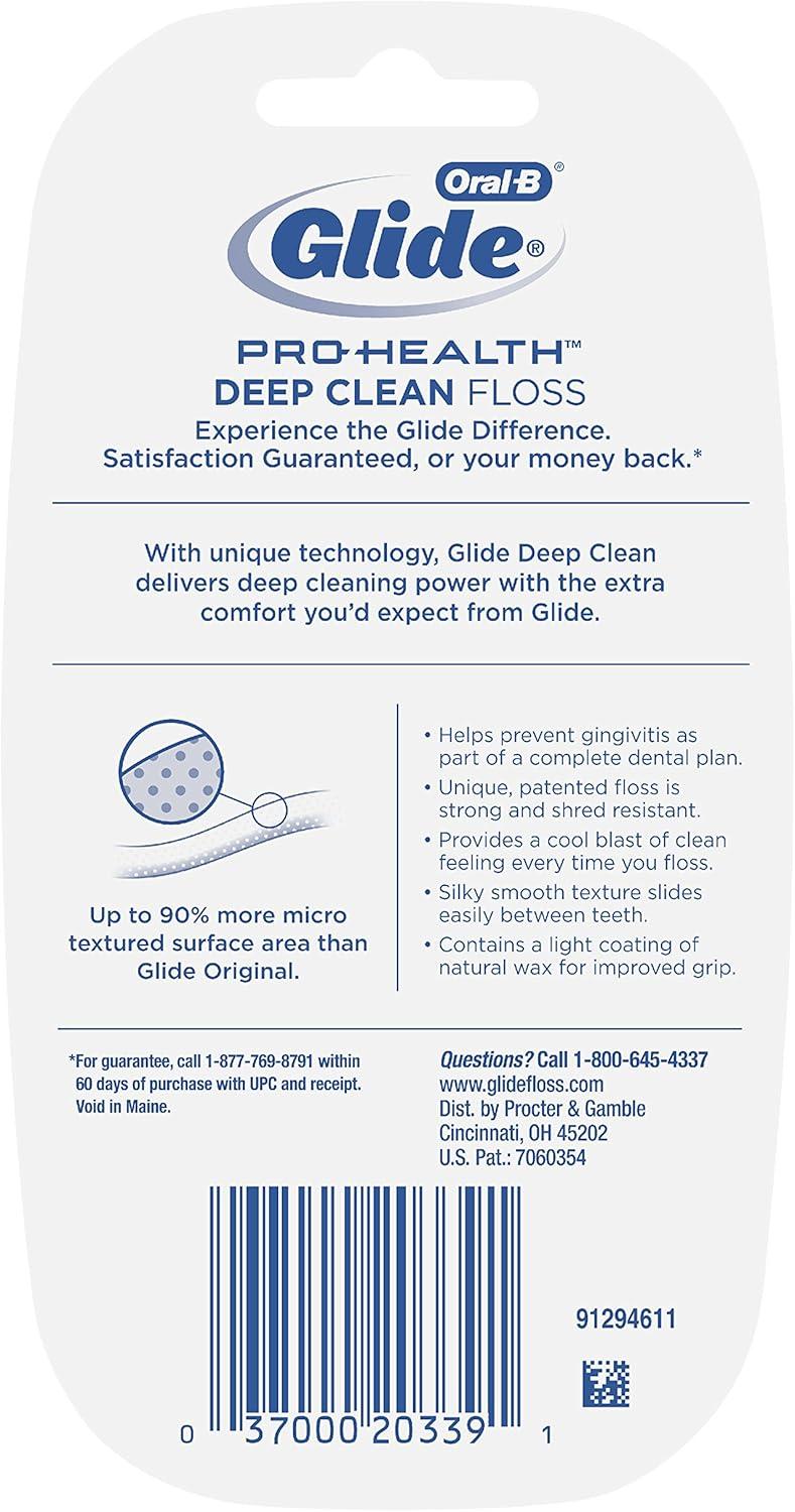 Oral-B Glide Pro-Heath Deep Clean Floss helps remove plaque between teeth and below the gum line with a cool burst of clean feeling. The silky-smooth, shred resistant texture slides up to 50% more easily in tight spaces vs. regular floss.