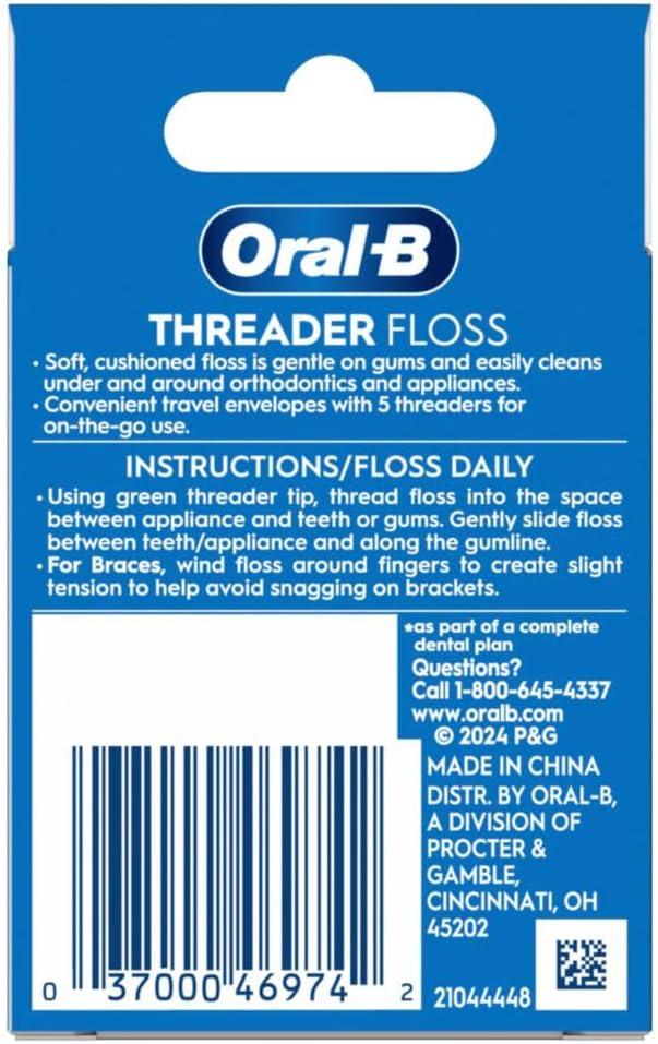 Oral-B Glide Pro-Health Threader Floss combines Glide floss and a built-in threader ideal for use with bridges, braces, and implants to effectively remove tough plaque between teeth and just below the gum line.