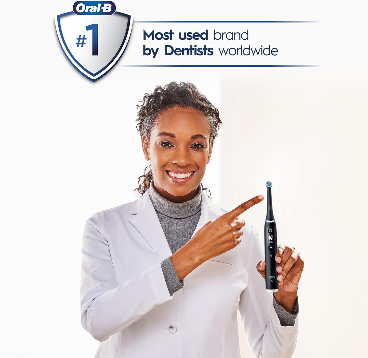 Oral-B iO Series 6 Rechargeable Electric Toothbrush with Visible Pressure Sensor to Protect Gums, 2 Minute Timer, 5 Cleaning Settings, 1 Replacement Toothbrush Head, and Travel Case, Black(Black Lava)