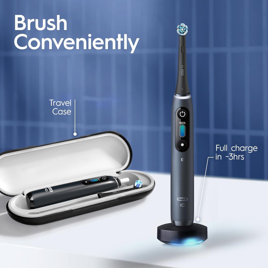 Oral-B iO Series 8 Electric Toothbrush with 2 Replacement Brush Heads and Travel Case, Rechargeable Toothbrush, Black Onyx(Blackonyx)