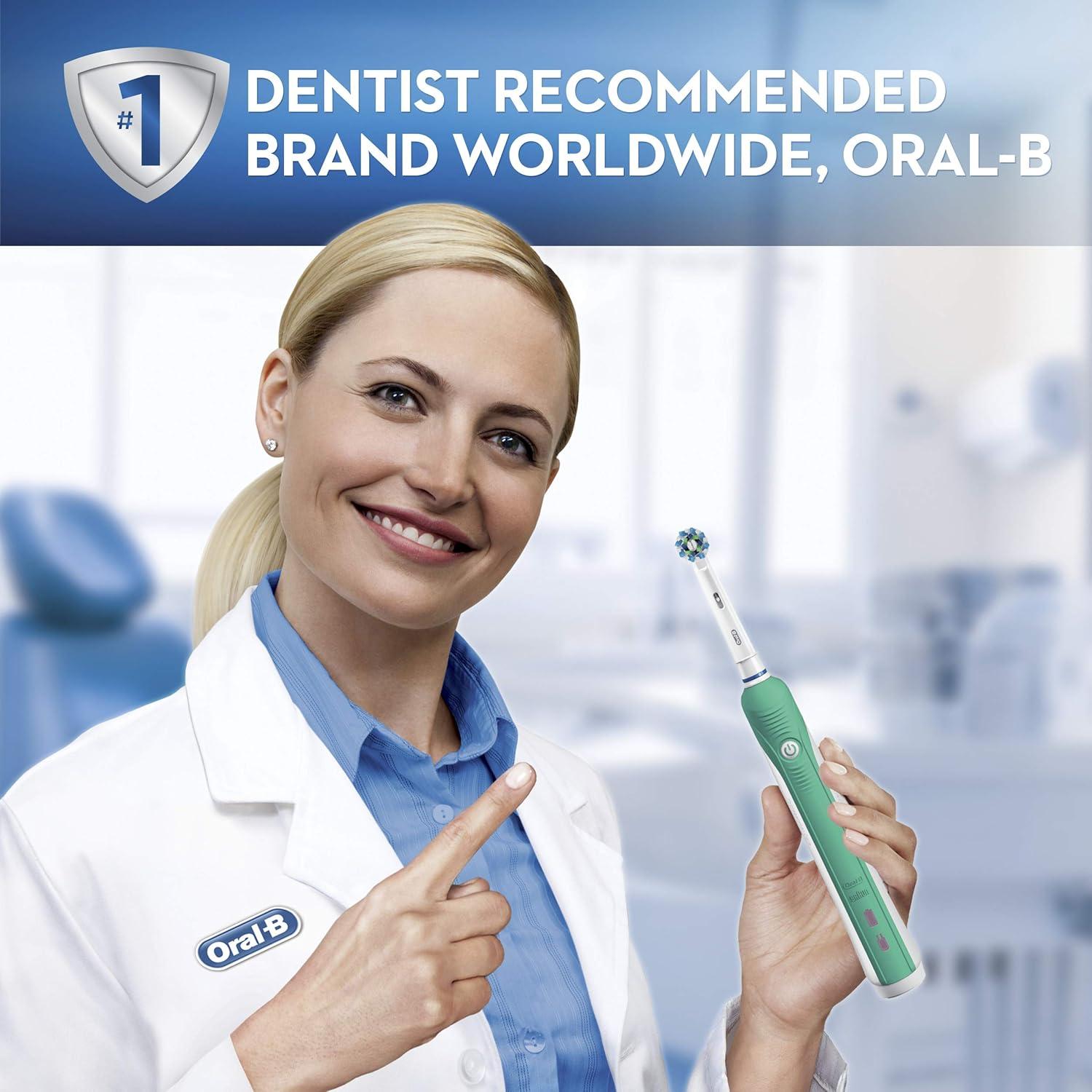The Oral-B Pro 1000 rechargeable electric toothbrush provides a clinically proven superior deep clean in hard-to-reach areas vs. a regular manual toothbrush. 300% MORE plaque removal along the gumline versus a regular manual toothbrush. The professionally inspired design of the CrossAction brush head surrounds each tooth with bristles angled at 16 degrees. The Oral-B Pro 1000 has 3D cleaning action that oscillates, rotates, and pulsates to break up and remove plaque along the gumline than a regular manual toothbrush. The pressure sensor stops pulsations if you brush too hard to prevent harmful over-brushing and there are 3 modes. The toothbrush also includes an in-handle timer to help you brush for a dentist-recommended two minutes. Best of all, it is brought to you by Oral-B—the #1 brand used by dentists worldwide.* *Based on surveys of a representative worldwide sample of dentists carried out for P&G regularly. Do not use on children under age 3. Replace brush (head) every 3 months or sooner if brush head becomes worn.