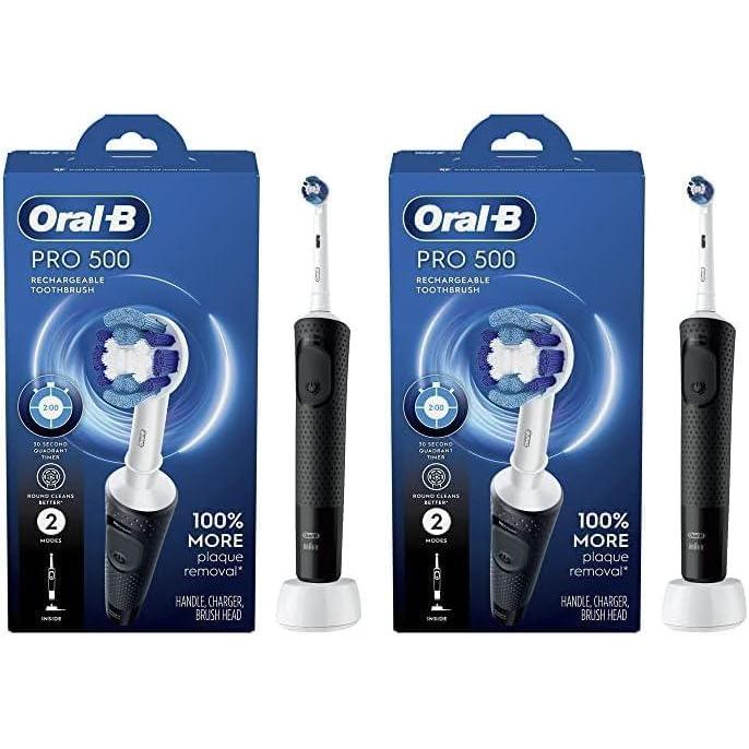 Oral-B Pro 500 Electric Toothbrush with (1) Brush Head, Rechargeable, Black(1 Count (Pack of 2))