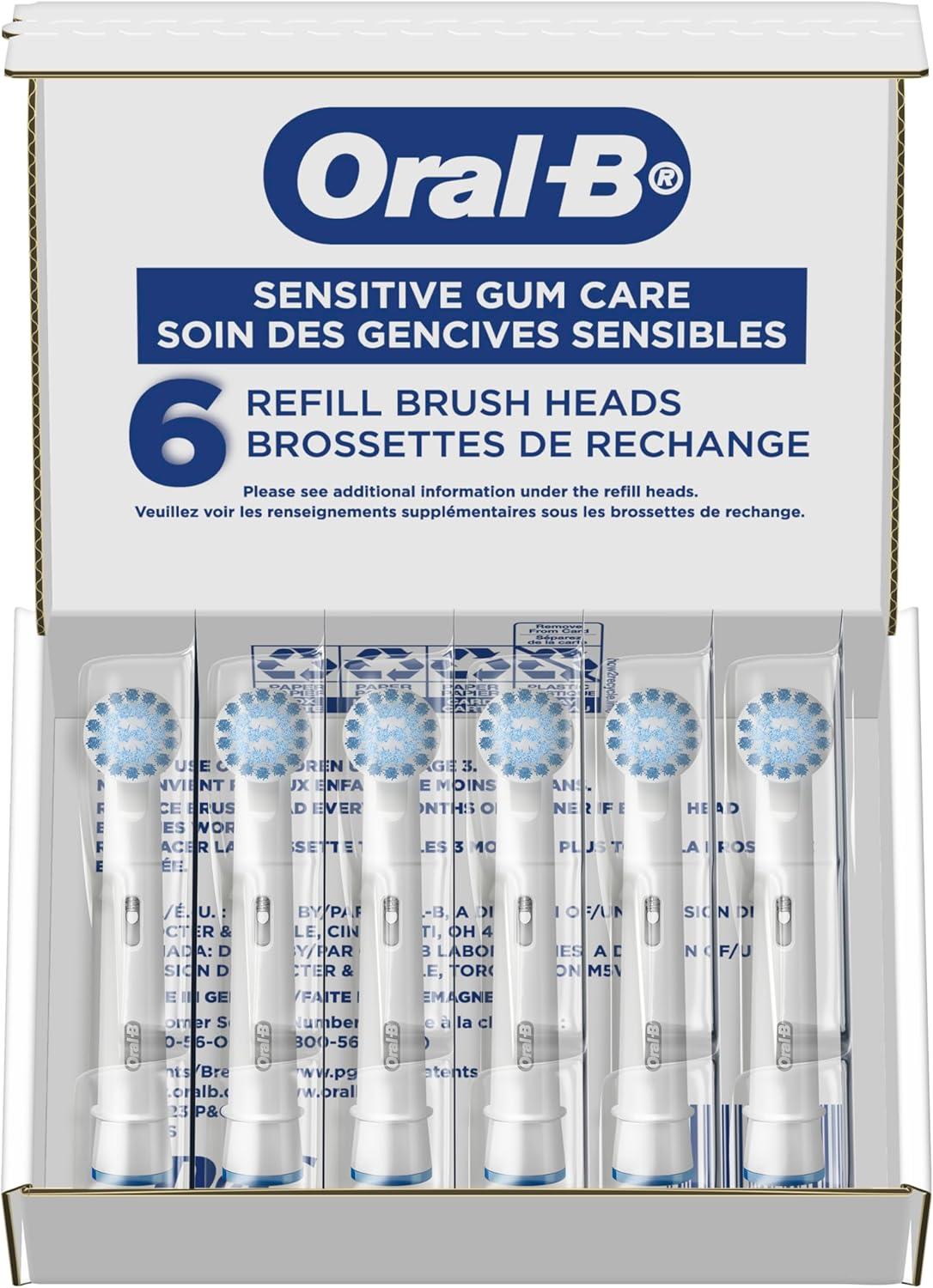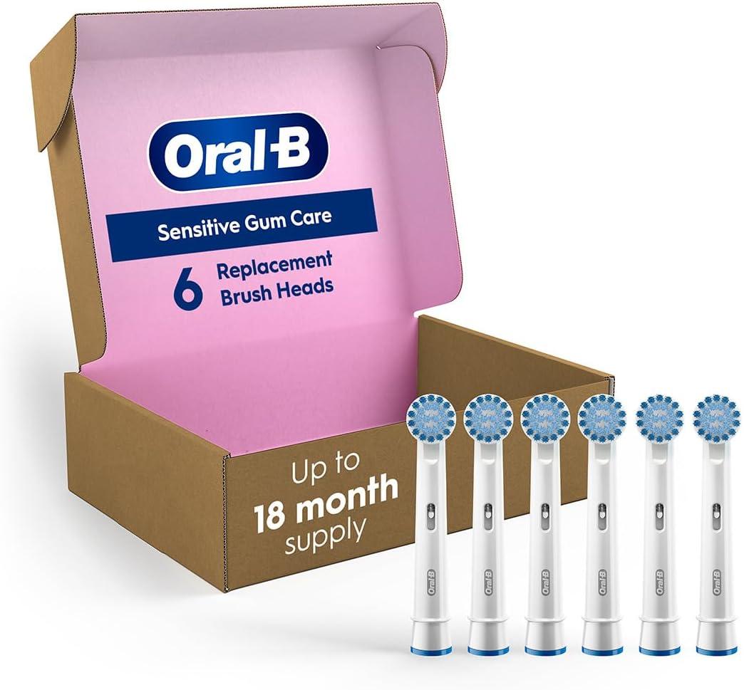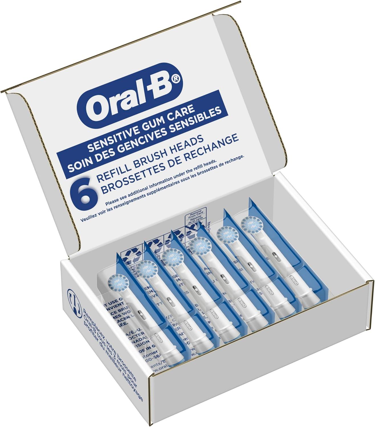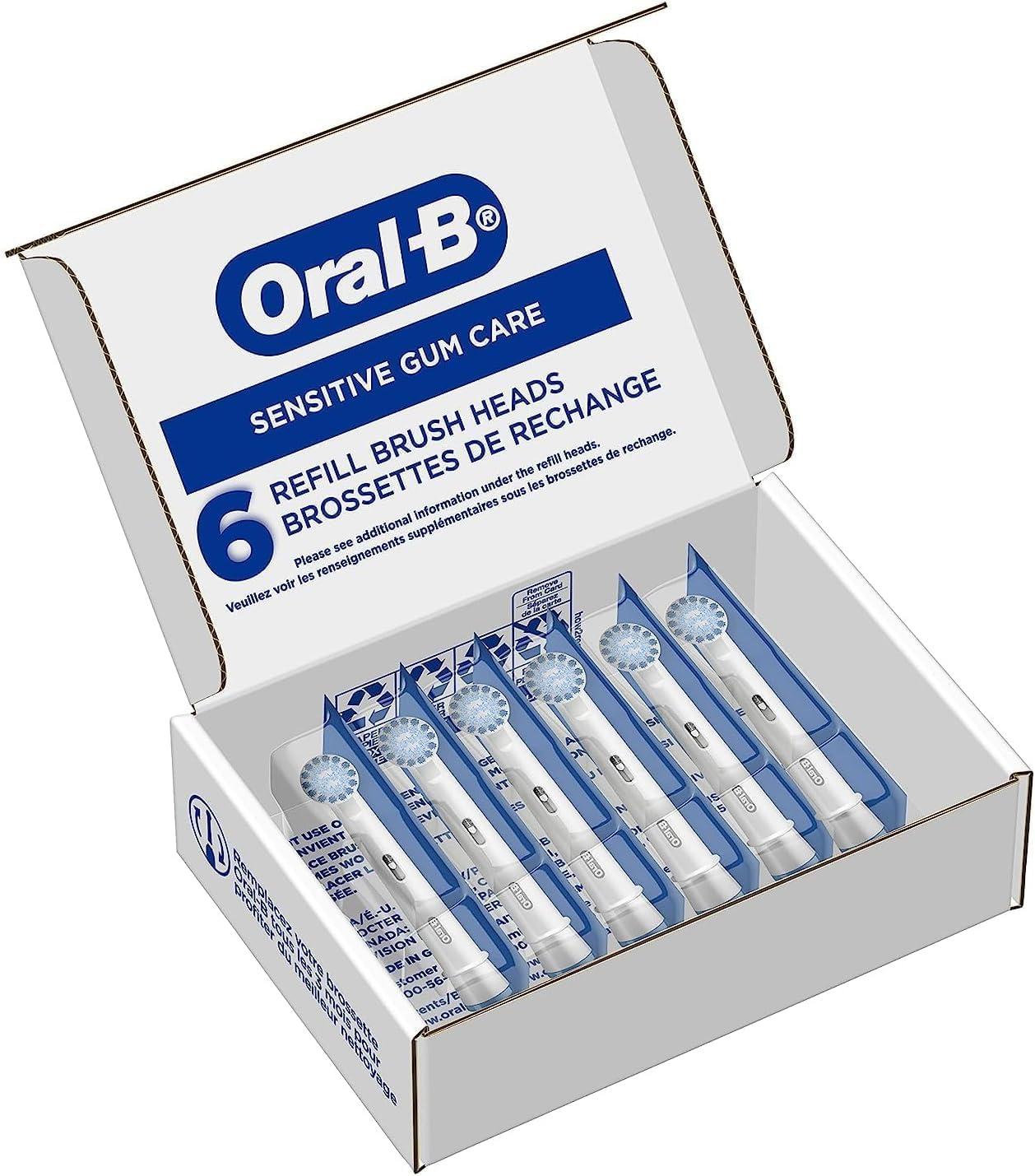 8 Genuine Oral-B Sensitive Gum Care electric toothbrush replacement brush heads compatible with entire lineup of Oral-B rechargeable toothbrush handles, except for Oral-B iO and Sonic toothbrushes