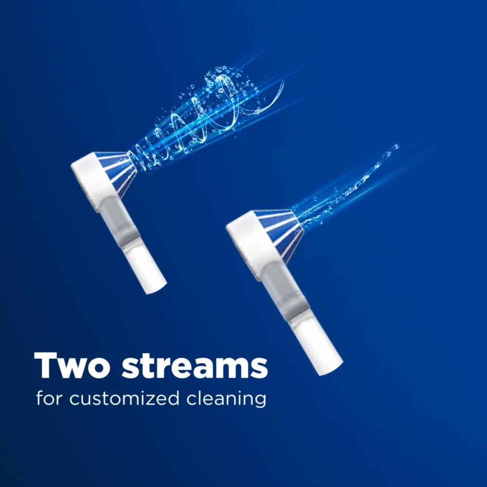 Oral-B Aquafloss Nozzles help you create a custom clean with 2 stream styles when used with your Oral-B Water Flosser Advanced Portable Handle (not included). Choose from a Focused mode for targeted cleaning, or a Rotational mode for massaging the gums. Both streams clean deep between teeth and eliminate plaque bacteria for healthier gums. *Helps reduce plaque bacteria and inflammatory components associated with gingivitis, when used as an adjunct to brushing, flossing and regular professional care.